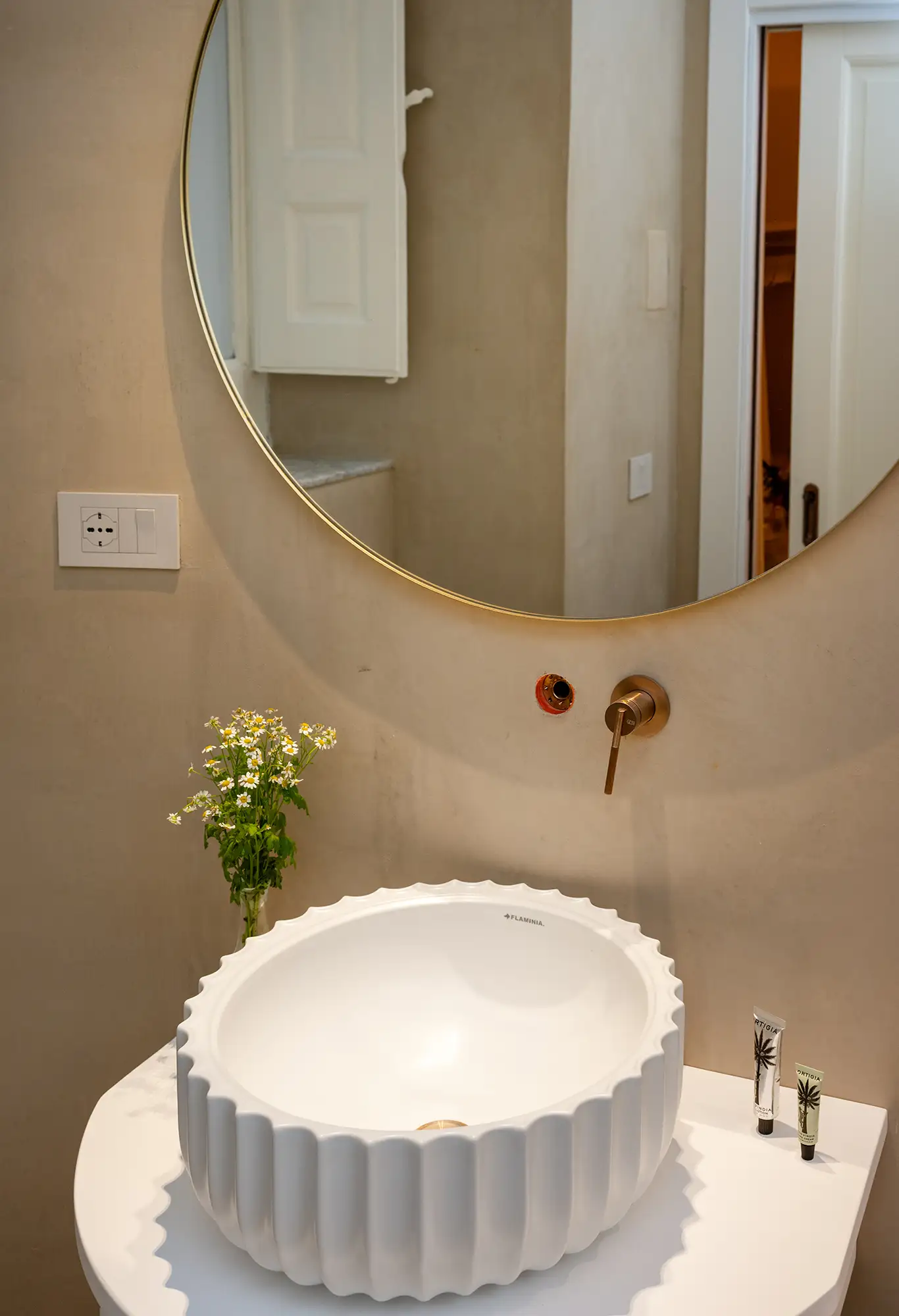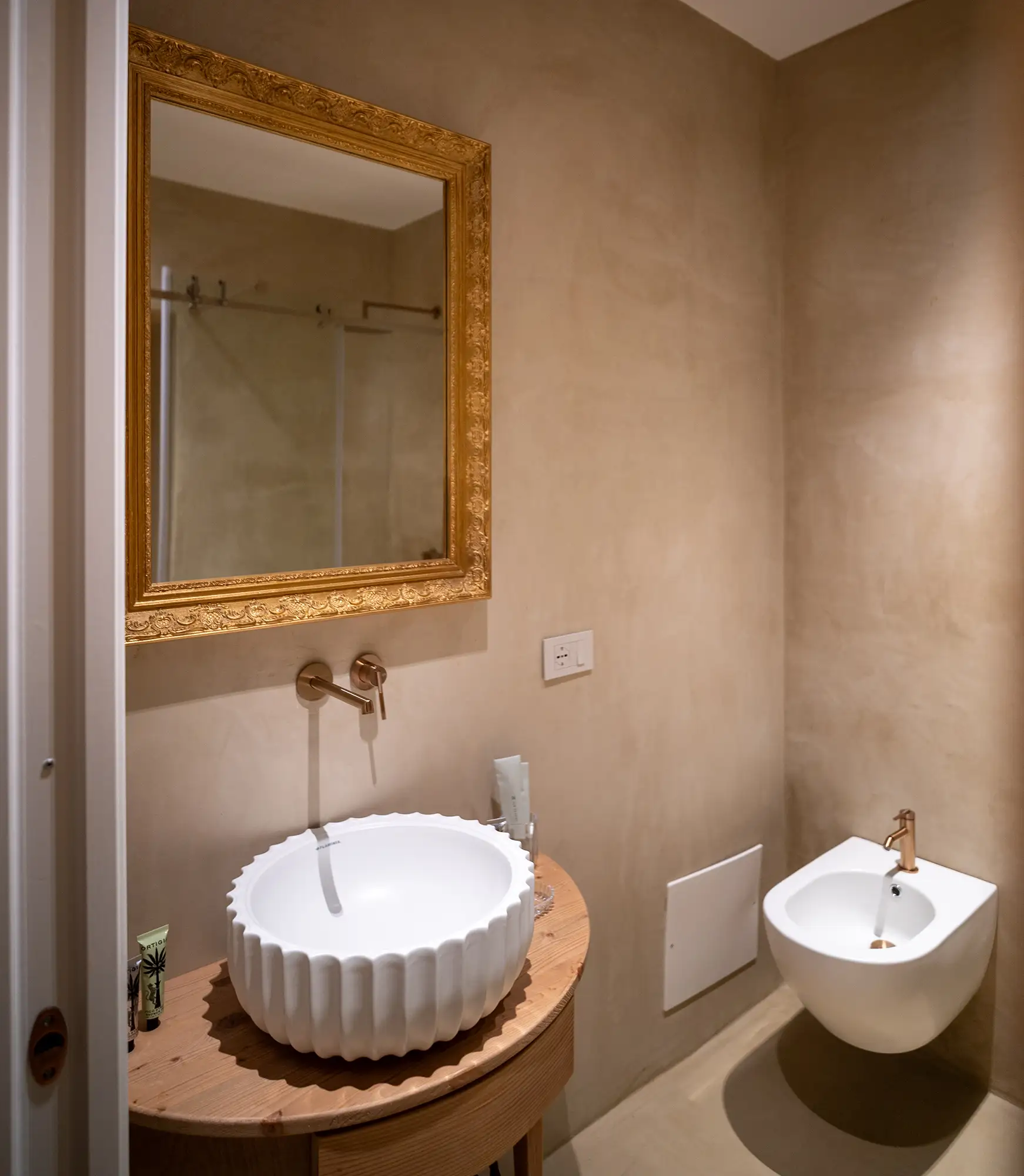 These quarters provide a perfect base for your Sicilian adventure. The rooms seamlessly blend historical details—such as the possibility of original 18th-century tiled floors—with modern convenience. The bathrooms are equipped with rain showers and furnished with luxury bathrobes and exclusive Ortigia skin care products, alongside a hairdryer. For your convenience, universal electrical outlets are strategically placed at the bedside. Climate control (air conditioning and heating) is managed effortlessly via a central control panel on the wall.