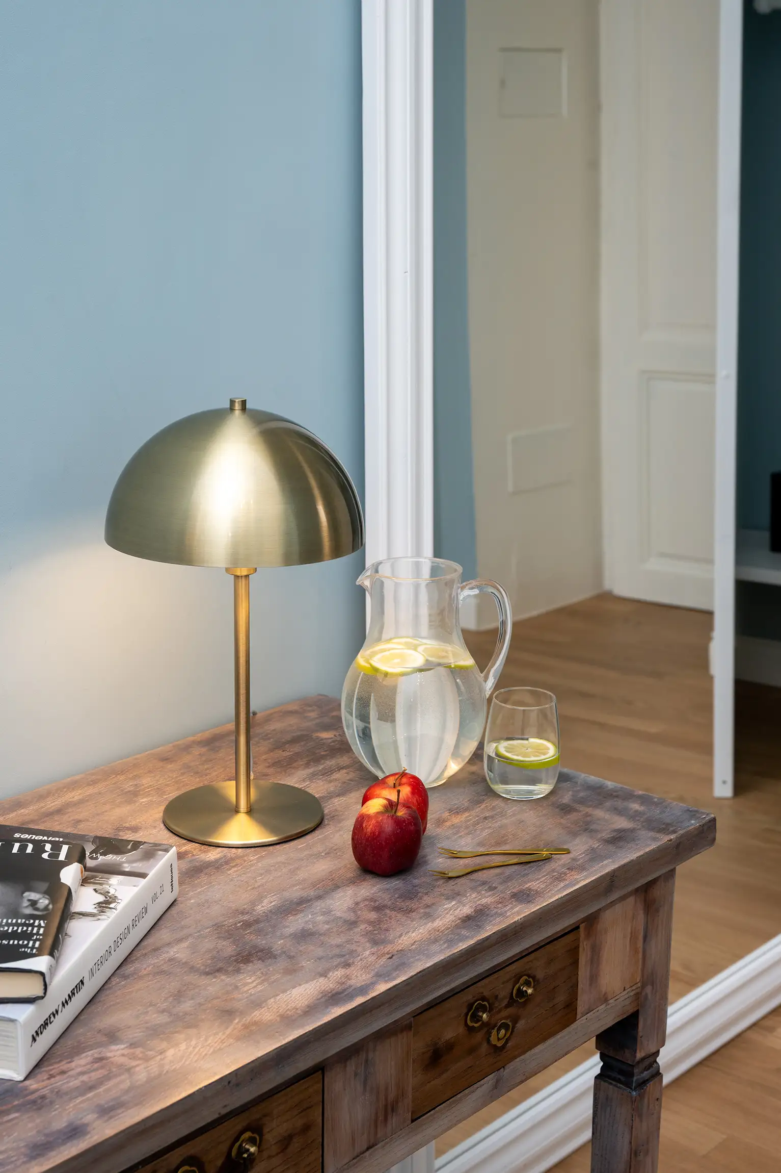 High ceilings and curated design pieces enhance the historic atmosphere.